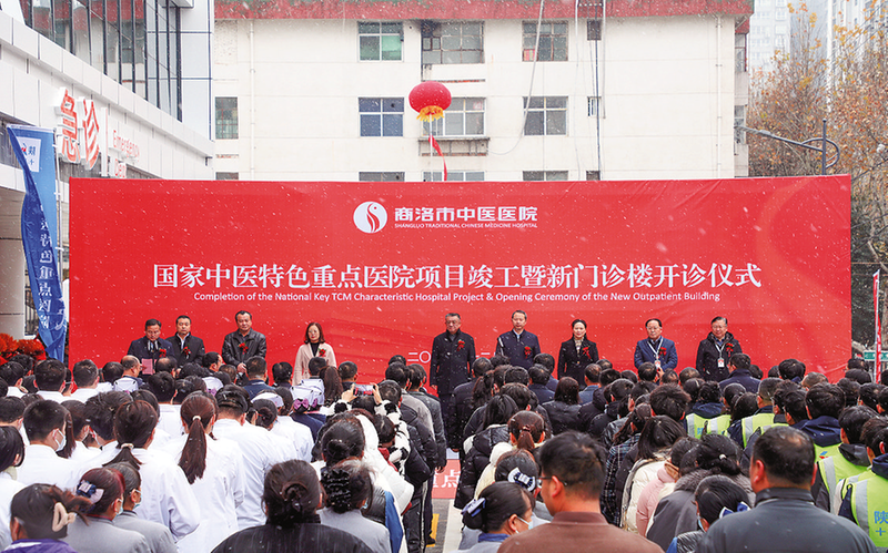 2023年12月28日,商洛市中医医院成功创建国家三级甲等医院。图为商洛市中医医院新建门诊楼开诊仪式现场。