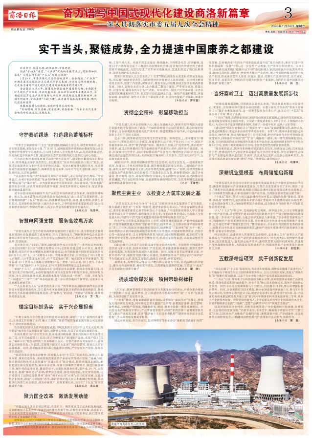 借着市委五届九次全会东风,“十五五”期间,商洛发电将紧扣高质量发展主线,切实履行国企社会责任,为商洛经济社会发展注入强劲动能。公司将不断深化国企改革,创新工作思路,凝聚共识,激发干劲,持续服务地方经济实现高质量发展。同时,要聚焦主责主业,全力推进二期项目建设,严守安全底线、质量红线、进度标线,确保双机早日投产见效。牢牢稳住一期生产经营基本盘,全力以赴做好区域能源保供工作,用实际行动扛起国企责任。围绕产业集群建设,对接新能源、高端制造、绿色化工等上下游适配企业,打造特色载能产业集群,加速企业转型。 (本报记者 贾书章)