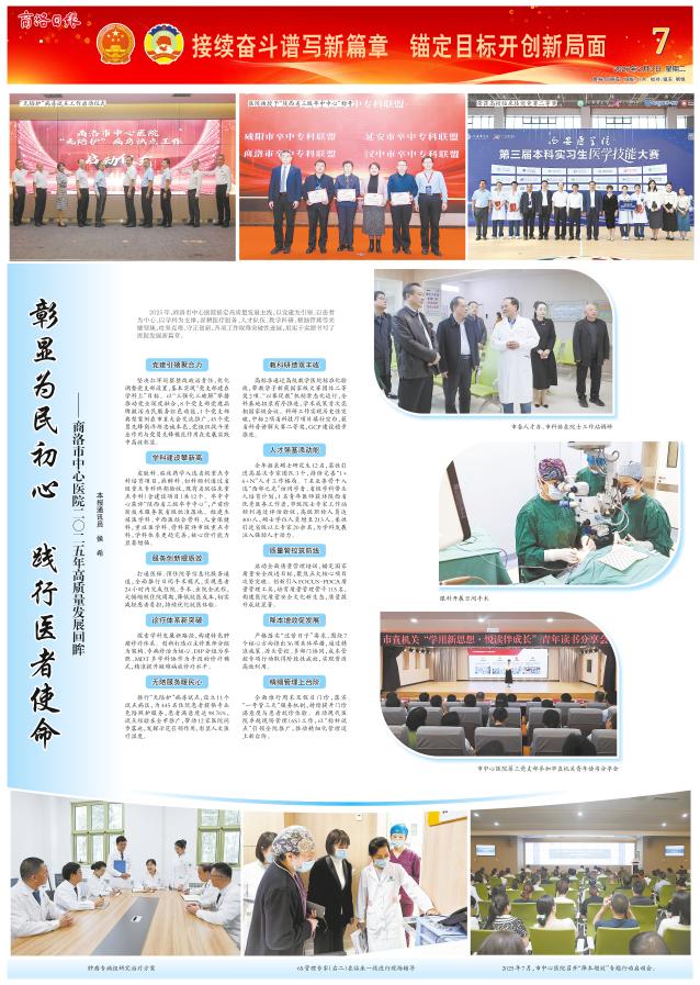 2025年,商洛市中心医院锚定高质量发展主线,以党建为引领、以患者为中心、以学科为支撑,深耕医疗服务、人才队伍、教学科研、精细管理等关键领域,攻坚克难、守正创新,各项工作取得突破性进展,用实干实绩书写了医院发展新篇章。