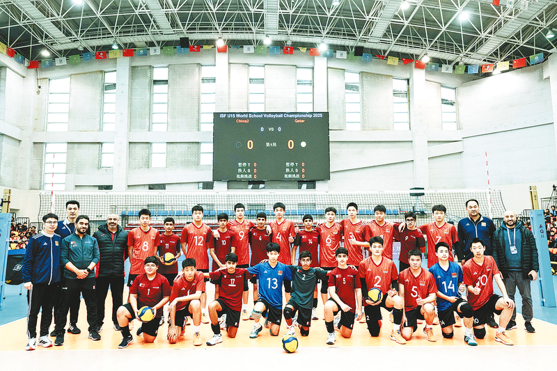 ◁U15世界中学生排球锦标赛参赛选手赛后合影。