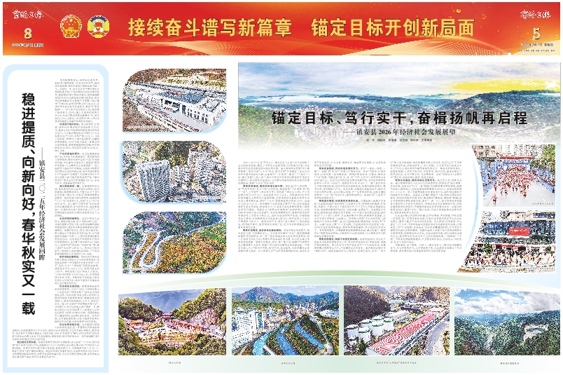 2026年是“十五五”开局之年,镇安县委十九届十次全会明晰了全县的发展思路,确定了今年全县主要预期目标和重点任务,为全县经济社会高质量发展勾勒出新蓝图。镇安县将坚决贯彻“两个更好统筹”,深化开展“三个年”活动、聚力打好“八场硬仗”,紧扣全市加快打造中国康养之都,全面提升“三个体系”、建设“三个城市”目标,着力实施“六提六新”,推动全县经济实现质的有效提升和量的合理增长,纵深推进富民强县,奋力谱写镇安高质量发展现代化建设新篇章,实现“十五五”良好开局。