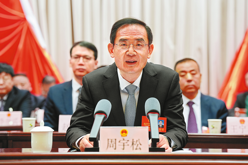 2月6日上午,商洛市第五届人民代表大会第六次会议在商州胜利闭幕。市委书记周宇松在会上讲话。 (本报记者 李小龙 摄)