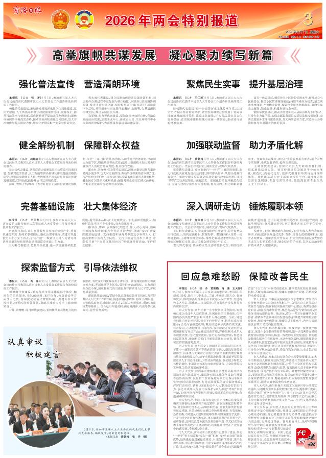 石炜、黄珊珊、周月辉代表建议,要积极借鉴其他地方的经验做法,有效预防和化解各类矛盾纠纷。法检两院要加大普法宣传力度,开展送法下乡活动,引导群众依法维权。多办理群众身边小案,用更接地气的司法服务守护商洛人民平安,护航高质量发展。