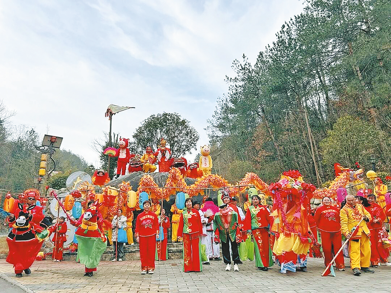 演出现场,有村民用手机直播表演盛况的,有老人家按捺不住内心激动跟着闹花灯队伍一起扭的,有小孩子跪在闹花灯队伍前抱拳讨要好彩头的,还有老人抱着婴儿驻足观看的……4只色彩斑斓的“狮子”腾挪跳跃,商南民歌充满地方特色,闹花灯队伍为村民们献上了一场年味十足的文化盛宴,也让这个秦岭深处的村庄沉浸在喜庆祥和的节日氛围中。