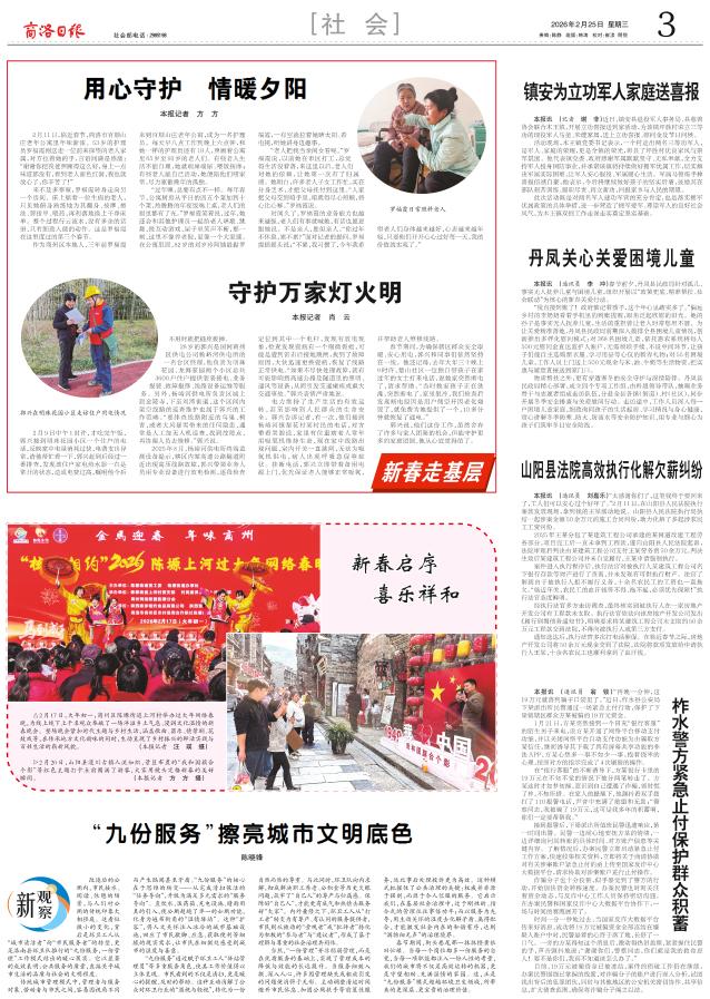 2月11日,临近春节,商洛市百顺山庄老年公寓里年味渐浓。53岁的护理员罗福霞刚送走一位前来探望的老人家属,对方拉着她的手,言语间满是感激:“谢谢你把我爸照顾得这么好,身上一点味道都没有,看到老人面色红润,我也就放心了,你辛苦了!”