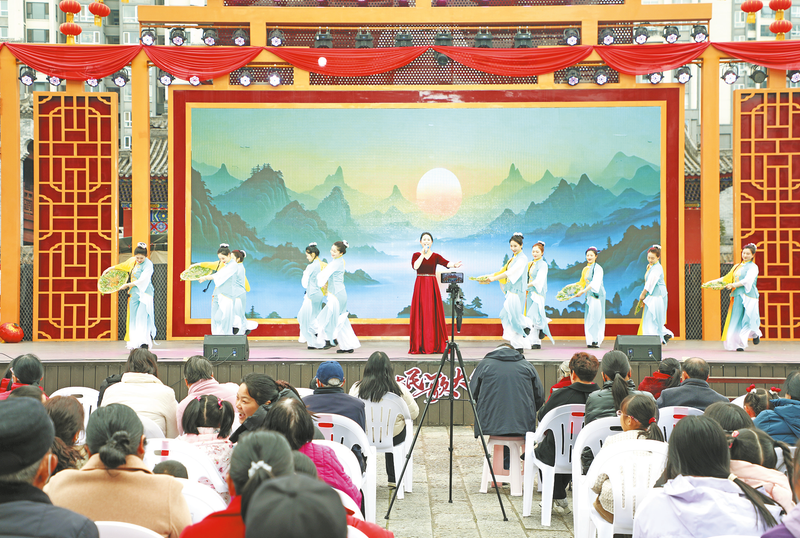 2月26日,商南县西街民歌大舞台前人头攒动、热闹非凡,“欢欢喜喜过大年”2026年春节文化惠民演出拉开帷幕,演出聚焦群众喜闻乐见的戏曲、歌舞、小品、民俗表演等节目,将传统年味与时代新风有机融合,用接地气、有温度的文艺作品,展现商南文化特色与群众昂扬向上的精神风貌。 (本报通讯员 张 瑜 摄)