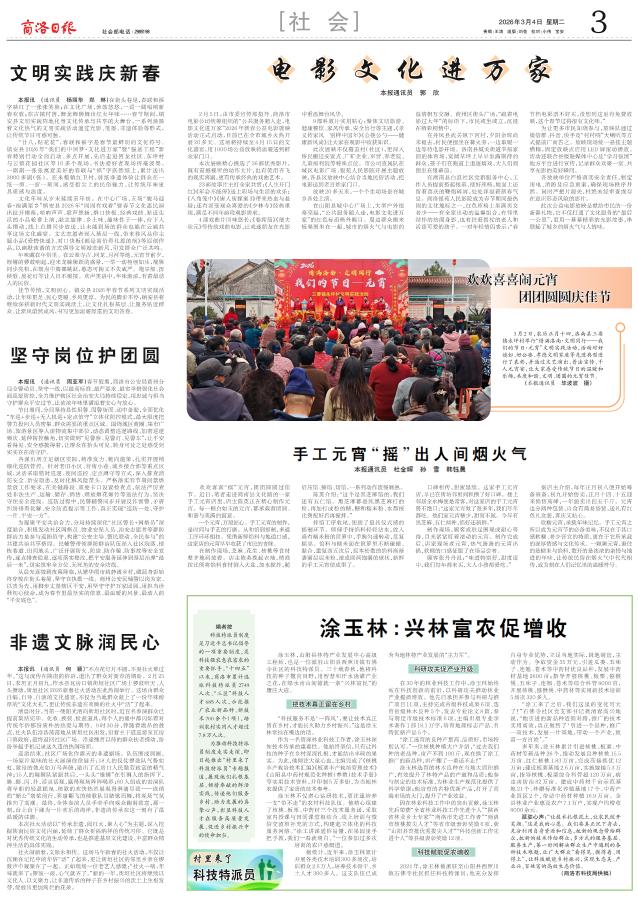 本报讯 (通讯员 杨丽华 郑 琳)在街头巷尾,春联和福字映红了一张张笑脸;在文化广场,渔鼓悠悠,一词一调唱响新春欢歌;在古镇村落,舞龙舞狮舞出红火年味……春节期间,镇安县文明实践阵地化身文化传承与共享的大舞台,一系列蒸腾着文化热气的文明实践活动通过光影、笔墨、非遗体验等形式,让传统节日可感可触。