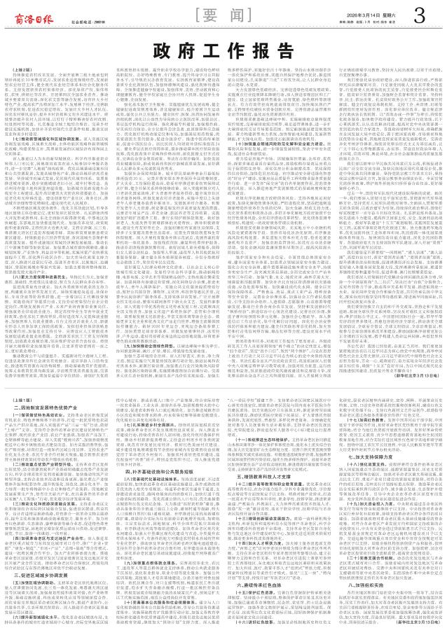 今年是“十五五”开局之年。做好政府工作,要在以习近平同志为核心的党中央坚强领导下,以习近平新时代中国特色社会主义思想为指导,深入贯彻党的二十大和二十届历次全会精神,认真落实党的二十届四中全会和中央经济工作会议部署,完整准确全面贯彻新发展理念,加快构建新发展格局,着力推动高质量发展,坚持稳中求进工作总基调,统筹国内国际两个大局,更好统筹发展和安全,实施更加积极有为的宏观政策,增强政策前瞻性针对性协同性,持续扩大内需、优化供给,做优增量、盘活存量,因地制宜发展新质生产力,纵深推进全国统一大市场建设,持续防范化解重点领域风险,着力稳就业、稳企业、稳市场、稳预期,推动经济实现质的有效提升和量的合理增长,保持社会和谐稳定,实现“十五五”良好开局。