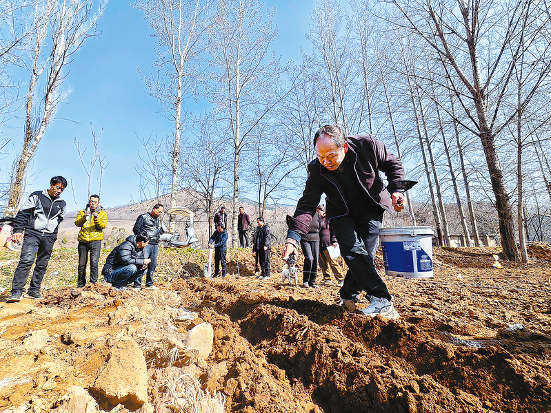 三月九日,在洛南县城关街道石塬村马铃薯集中种植示范基地,当地群众在农技干部的指导下,实施“马铃薯+玉米”带状复合种植,为粮食安全生产和农民持续增收奠定坚实基础。(本报通讯员郭夏季 摄)