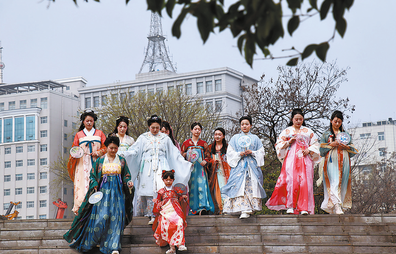 ▷汉服游园活动中的汉服表演。