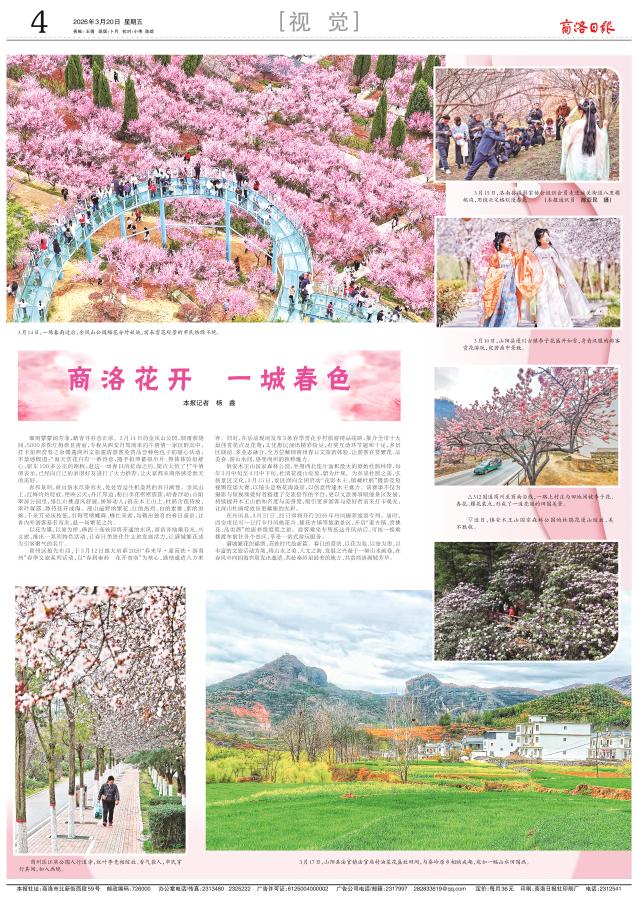 满城繁花织锦绣,高铁时代绘新篇。春日的商洛,以花为笺、以景为墨、以丰富的文旅活动为笔,将山水之美、人文之韵、发展之兴凝于一幅山水画卷,在春风中向四海宾朋发出邀请,共赴秦岭里最美的地方,共赏商洛满城芳华。