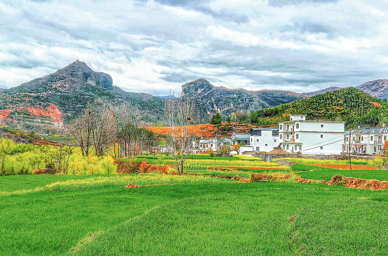 3月17日,山阳县法官镇法官庙村油菜花盛放田间,与秦岭原乡相映成趣,宛如一幅山水田园画。