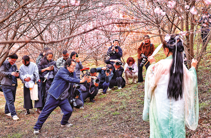 3月15日,洛南县摄影家协会组织会员走进城关街道八里樱桃沟,用镜头定格烂漫春色。 (本报通讯员 陈亚民 摄)
