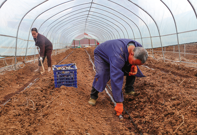 3月18日,洛南县四皓街道柳树洼村现代农业产业示范园里一派繁忙景象,村干部和农户配合默契,有序进行蔗种的搬运、播种、施肥、盖膜、覆土等,为甘蔗丰产打下坚实基础。村党支部书记王高平说,为进一步提升甘蔗的甜度、品相与市场竞争力,该村今年专程从广西引进了适合本地气候土壤的两种优质甘蔗品种(黄皮甘蔗和黑皮甘蔗),将发展甘蔗20亩,预计收入可达20万元。(本报通讯员 雷 鸣 摄)