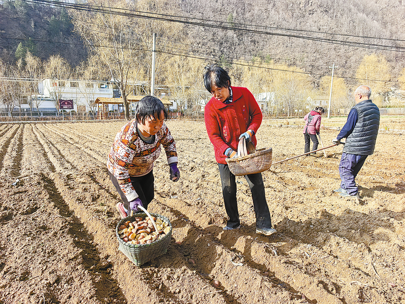 3月21日,在商州区三岔河镇闫坪村稻虾共生休闲露营地,村民正抢抓农时,完成20亩地膜土豆的规模化种植。该地块将依托稻虾共生的生态农业基底,于今年推出研学教育、亲子采挖体验等系列乡村文旅活动,进一步拓宽农旅融合增收渠道,为乡村产业发展注入新活力。 (本报记者 王孝竹 摄)