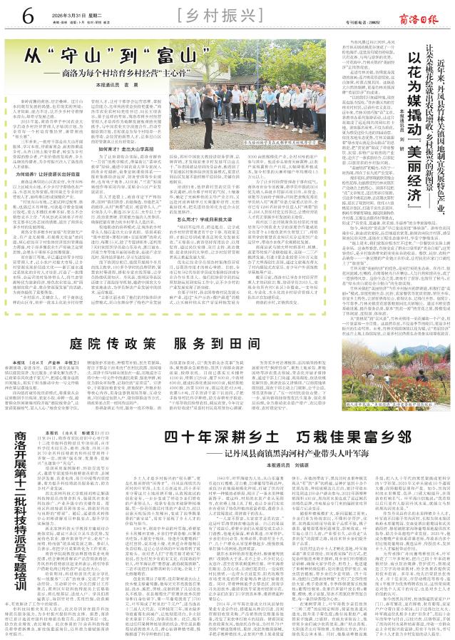乡土人才是乡村振兴的“领头雁”,更是扎根田野的“田秀才”。丹凤县商镇黑沟河村的叶军海,土生土长在这里,四十多年来守着这片土地深耕不辍,从敢闯敢试的创业青年,一步步变成了带动乡亲们增收的产业带头人。他靠专业技术破解种植难题,凭一份责任激活村里的产业活力,把以前靠天吃饭的土坎梯田,变成了四季飘果香的“聚宝盆”,用实干展现了乡土人才的价值与担当。