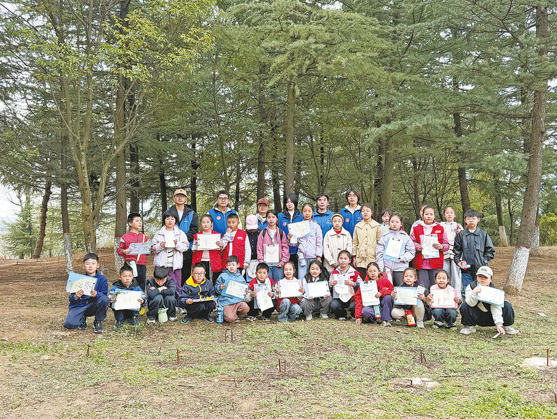 ▷小记者展示作品。本报讯 (记者 方 方)3月28日,商洛日报小记者团与商洛学院秦岭生态研学营携手,在金凤山公园举办“花草诗画踏春行”——金凤山春日日记主题实践活动暨“美丽陕西 生态先锋”志愿活动。活动以“亲近自然、记录美好”为主线,打造沉浸式春日实践课堂,引导小记者走近自然,感受盎然生机。