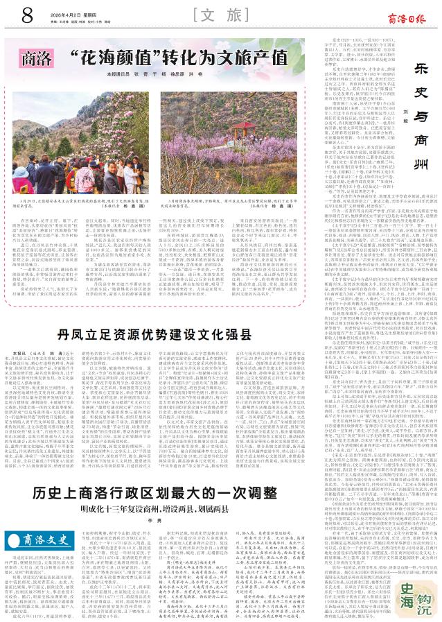 成化十二年(1476)十二月,将丰阳巡检司移至漫川,在原地设立山阳县。成化十三年(1477)三月,将原商县武关以东析置商南县。同时,将属华州的洛南、西安府的镇安划归商州管辖。自此,商州直管原商县境,且下辖洛南、山阳、商南、镇安4个县。